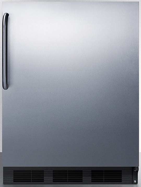 The FF6BK7SSTB is a counter height all-refrigerator with a full 5.5 cu.ft. capacity inside a slim 24" footprint. Designed for freestanding use, this unit has black cabinet with a stainless steel wrapped door. A curved towel bar handle completes the look. The FF6BK7SSTB is ETL-S listed to NSF-7 standards for use in commercial establishments. For a built-in version of this unit, see the FF6BKBI7SSTB. For more finish options, browse the entire FF67 Series.
