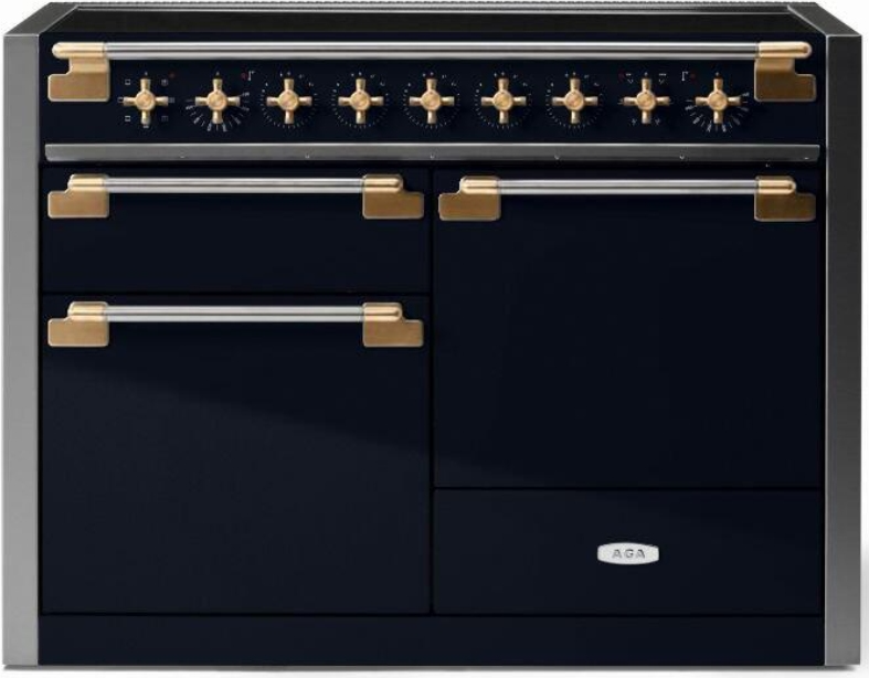 The AGA Elise 48" Induction Model features three separate ovens. The first is an electric multifunction oven with seven settings including true European dual-convection cooking, fan-assisted baking, browning, thaw and serve, convection broiling, warming, and conventional cooking. A second European convection oven offers the ability to cook multiple large dishes.Read More
