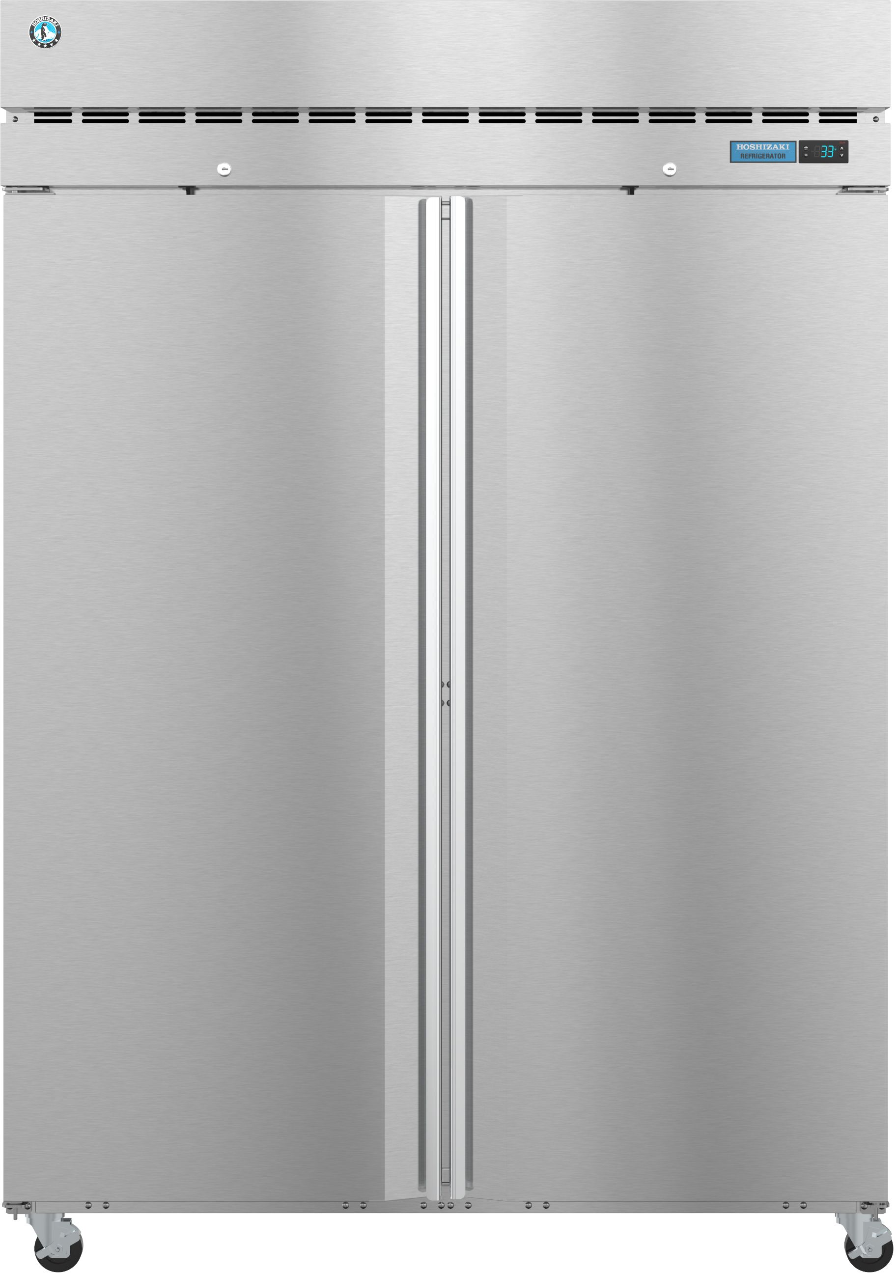 The R2A-FS Steelheart Series upright two section refrigerator with full stainless doors is an attractive workhorse for any business. The dependable 1/2 HP motor that powers the compressor in the top of this unit provides the cabinet with a continuous stream of cold air through its unique ‘ducted’ air distribution system, which ensures a steady constant temperature. The durable Stainless steel exterior (front, sides, top) and a stainless steel interior resists the random damage normal in a commercial kitchen or business. Plus, it is easy to clean. The R2A-FS Includes 6 epoxy coated wire coated wire shelves adjustable in 1″ increments on stainless steel supports, and the (4) 4″ stem casters (2 with brakes) are standard. It features field reversible, spring assisted self closing door with stay open feature (no kit req’d). Optional kits: 6″ Legs, Epoxy or stainless steel shelves, Tray/pan slides, Foot pedal door opener, Additional air filter. The unit is ETL Safety (US & C) Listed, ETL Sanitation and includes a five years compressor warranty / three years parts and labor warranty.