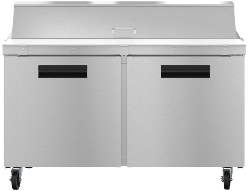 The SR60B-16 Steelheart Series Sandwich two section refrigerator with stainless doors is a space saving workhorse. Engineered to maintain food safe temperatures in 100°F ambient conditions. With a net capacity of 14.8 cubic feet this efficient sandwich refrigerator and front air flow design is perfect for hot/tight kitchens.Read More