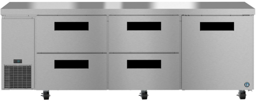The ULR93B-D4 Steelheart Series Undercounter three section side mount refrigerator with drawer/door combo is a space saving workhorse. Engineered to maintain food safe temperatures in 100°F ambient conditions with a net capacity of 30.17 cubic feet this efficient undercounter side mount refrigerator and front air flow design is perfect for hot/tight kitchens.Read More