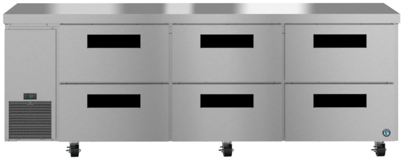 The ULR93B-D6 Steelheart Series Undercounter three section side mount refrigerator with stainless drawers is a space saving workhorse. Engineered to maintain food safe temperatures in 100°F ambient conditions with a net capacity of 30.17 cubic feet this efficient undercounter side mount refrigerator and front air flow design is perfect for hot/tight kitchens.Read More