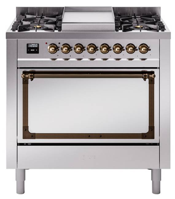Introducing the new Nostalgie II 36" dual fuel range, a classic addition with a touch of innovation to any kitchen. This range feature sealed burners equipped with total black brass burner that has a non-stick nanotechnological coating, heavy cast iron grates, 3.5 cu. ft. total oven capacity and soft closing door system.Read More