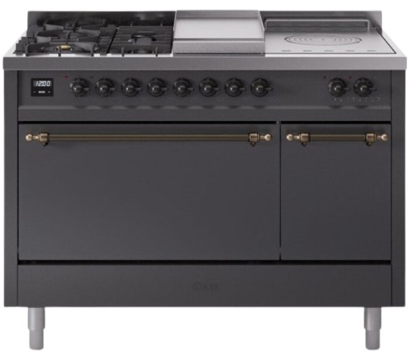 Introducing the new Nostalgie II 48" dual fuel range, a classic addition with a touch of innovation to any kitchen. This range feature sealed burners equipped with total black brass flame spreader that has a non-stick nanotechnological coating, heavy cast iron grates, 3.5 + 1.52 cu. ft. total double oven capacity and soft closing door system.Read More