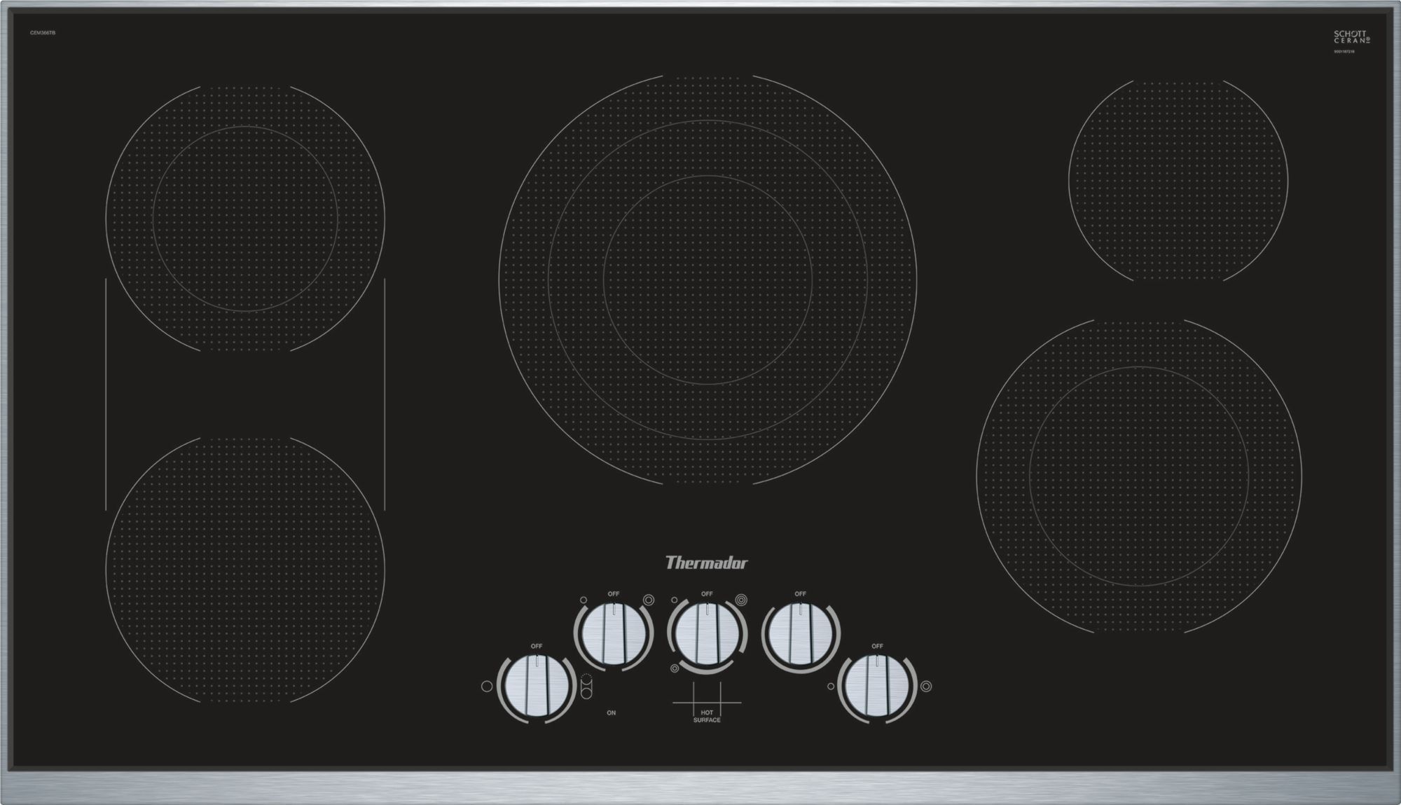 Thermador® Masterpiece® 36" Stainless Steel Frame Electric Cooktop with 5 burners, metal knobs and variable 9 stage power settingsRead More